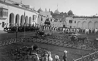 The complex remained a center of intrigue and political drama. For instance, on 28 April 1898, shortly after a grand durbar and fireworks display, a fire broke out in the administrative wing of the palace.[2][1] Though it was contained before spreading, a significant number of historical records were destroyed, only the records of 1896, 1897 and 1898 could be saved.[1] An investigation confirmed it was an act of arson; however, the perpetrators were never apprehended.[2][1]