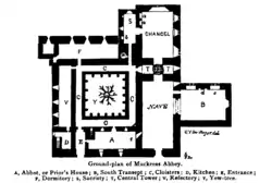 It has had a violent history and has been damaged and reconstructed many times. The friars were often subjected to raids by marauding groups and were persecuted by Cromwellian forces under Lord Ludlow.[2] Today the abbey is largely roofless, but is otherwise generally quite well-preserved with safe stairways providing access to the upper storey.[3] Its most striking feature is a central courtyard, which contains a large yew tree and is surrounded by a vaulted cloister.[4]