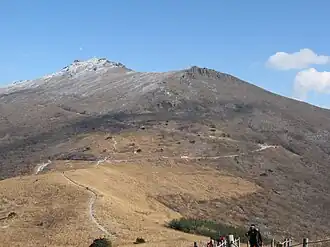Mudeungsan (Korean: 무등산) is a mountain in South Korea. It extends over Buk District, Gwangju, as well as Hwasun County and Damyang County in South Jeolla Province. Mudeungsan has an elevation of 1,187 m (3,894 ft)[2] and is a part of Mudeungsan National Park[1] which gained national park status in 2012.[3] The peak of Mudeungsan is named Cheonwang summit, but it has been designated as a protection zone for air force military installations. Therefore the highest spot the climbers can ascend without special permission is Seoseokdae Rock, with an elevation of 1,100 m (3,600 ft).[4]