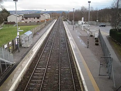 Muir of Ord railway station is a railway station on the Kyle of Lochalsh Line and the Far North Line, serving the village of Muir of Ord in the Highland council area of Scotland. The station is 13 miles 4 chains (13.05 mi; 21.0 km) from Inverness, between Beauly and Conon Bridge, and is the location of the sole remaining passing loop on the single line between Dingwall and Inverness.[4]