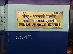 The 12111/12112 Amravati Express is a Superfast Express train belonging to Indian Railways that runs between Mumbai CST and Amravati Terminus in India. It is a daily service. It operates as train number 12111 from Mumbai to Amravati and as train number 12112 in the reverse direction. This train was introduced on 7 September 2008.[1]