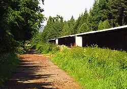 There was cca 3 km long spur from railway station in Ondřejovice forking the Mikulovice – Zlaté Hory railway. It ended in a loop of radius 200 m and there was a train station with cargo platform. There were several epidemics in the course of the war, besides other epidemic typhus.[2] The site was used to collect Sudeten Germans before their expulsion to Germany after the end of World War II. Up to 52,000 persons passed through the camp.[3]