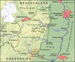 In 1946, the administration of the French zone of occupied Germany made an area of 7 square kilometres (2.7 sq mi) in the German part of the Upper Mundat Forest administratively a part of France, in order to guarantee the water catchment area for Wissembourg.[10][11] This was formalized as part of Order No. 212, issued by the French Commander-in-Chief in Germany Koenig in April 1949. The area was put under exclusive French administration, preserving only German territorial sovereignty over the area.[11] Initially the area included the hamlet St. Germanshof,[12] but a correction in 1949 ensured that only uninhabited land was affected.[13] A formal annexation, transferring also the territorial sovereignty to France, seems to have been planned originally, but it was never executed.[14]