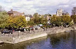 The crest above the shield was a swan on water with an eel in its beak. This represented the River Thames, a long boundary of the town for three miles (5 km). The eel was for Eel Pie Island.[3]