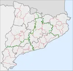 Catalonia's municipalities are (as of 1987[ 3] ) grouped into 42 comarques (by the Catalan government) and four provinces (by the Spanish government). Occasional revisions of the boundaries of comarcas have resulted in municipalities moving from one comarca to another; see the list at Comarques of Catalonia .