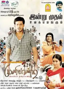 Muniyandi Vilangyial Moondramandu (transl. Muniyandi, Third Year Zoology) is a 2008 Indian Tamil-language romantic drama film written and directed by Thirumurugan. Bharath, Poorna (in her Tamil debut),[1] Ponvannan, and Vadivelu star in this film. The film was produced by Malaysian-based firm Lotus Five Star in association with Thiru Pictures. The music was composed by Vidyasagar. The film was released on 4 July 2008,[2] and became a box office failure.[3]