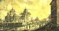 The official foundation of the monastery can be established on 16 June 1224. That is when, in the presence of the papal legate Conrad van Urach, the foundation deed was signed by Gerard III, Count of Guelders, and his wife, Margaret of Brabant. However, this signing was only a legal formality, as the monastery had been established in Roermond several years earlier, from 1218.[2] The monastery church was incorporated in the Cistercian order in 1220,[3] although the building might not have been completed by then. It was consecrated by the Archbishop of Cologne.[3] The first abbess was Richardis of Bavaria, widow of Count Otto I of Guelders and mother of Gerard III.[4] At her request, the abbot of Kamp was appointed visitor by the pope.[3] She died in 1231 and was buried in the abbey.