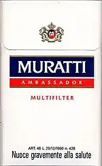 Muratti is a brand of cigarettes,[1] currently owned and manufactured by Philip Morris International.[2] Several Muratti variants have been introduced over the years and were also sold as Ambassador, Ariston, Cabinet, Gentry, Iplic, Peer and Regent.[3]