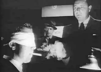 With his eyes bandaged, private detective Philip Marlowe is interrogated by police lieutenant Randall about two murders.