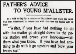 Walter McAlister being named as a suspect shocked the city and was a blow to the family's reputation.[2]