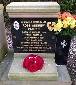 A plaque was installed in Netherton in Peterborough as a memorial to Parker, and a further memorial is located at Peterborough Crematorium.[4] His former football team mates and friends also play a match every May in his memory and formed a team called "Ross' Rangers".[23]