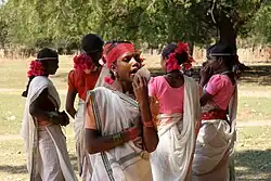Male Muria wear clothing similar to that of the Chandrapur District, while the females often dress in simple garments that do not cover the breasts.[1] The style of the garments appears to have been modified after contact with other tribes, as observed in the early 1980s.[5]