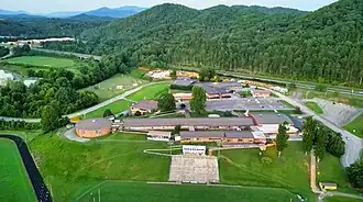 Murphy High School (MHS) is a public high school in Murphy, North Carolina. It serves grades 9–12 and is the largest of three high schools in the Cherokee County Schools system.[3][4] The MHS campus is sandwiched between U.S. Route 19 and the Valley River. The high school shares its campus with Murphy Middle School and the Cherokee County Schools Bus Garage. As of 2007 the school had a full-time teaching staff of 42 teachers giving an average of 12 students per teacher.[3][5] It has a GreatSchools rating of 5/10 and an average community rating of 4/5 stars.[6] In the 2024–25 school year, 437 students were enrolled. The school has a capacity of 746 students.[2]