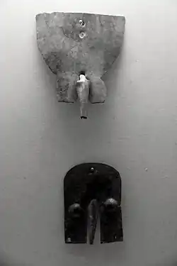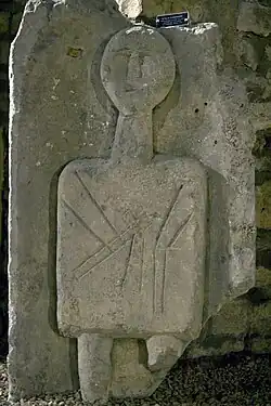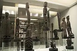 The chapter house and scriptorium includes wood carved offerings to the goddess Sequana, a number of bas reliefs, and a sculpture of Sequana.[1] Pilgrims from as far as the Mediterranean came to offer Sequana ex-votos at the source of the Seine River, with the temple to her being expanded by the Romans before its destruction in the fourth or fifth century AD. Included on this level is a drawn reconstruction of the numerous structures of the temple. The sculpture of Sequana and the ex-votos associated with her worship are considered a centerpiece of the museum, with curator Frédérique Bouvard remarking that the duckboat statue of Sequana is the museum's "Mona Lisa."[1]