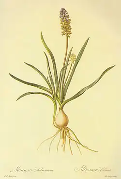 Muscari racemosum is a perennial bulbous flowering plant in the asparagus family Asparagaceae. The members of the genus are commonly known as grape hyacinths. Originally from south-west Turkey where it grows in rocky places, it is sometimes grown as an ornamental plant. It may be found in the horticultural literature under the synonym Muscari muscarimi.[2]