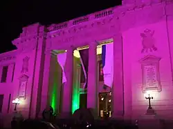 The main facade exhibits the dates 1811 and 1910: The first is a reference to the death of Miguel Hidalgo, whilst the second refers to the time of the building's inauguration. The center contains the legend, Palacio Federal.
