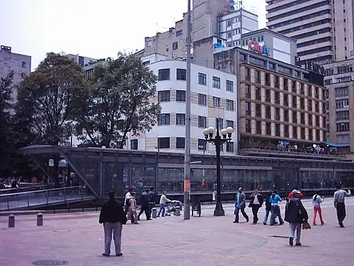 Museo del Oro is a bus station. It is part of the TransMilenio mass-transit system of Bogotá, Colombia, opened in the year 2000.