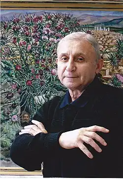 ![]() Mushail Mushailov next to his painting "The Greater Burdock". Moscow. 2006. | |