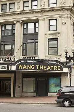 The Wang Theatre is a theatre in Boston. It originally opened in 1925 as the Metropolitan Theatre and was later renamed the Music Hall. It was designed by Clarence Blackall and is located at 252–272 Tremont Street in the Boston Theatre District. The theatre is operated as part of the Boch Center.[2] The theatre was designated as a Boston Landmark by the Boston Landmarks Commission in 1990.