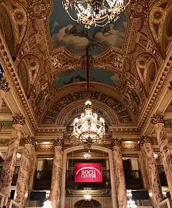 In 1983, Dr. An Wang made a very large donation and the Wang Center was born.[5] From 1989–1992, $9.8 million was raised to restore the Theatre to "its glory days of the 1920s".[6] Boston based architecture firm Finegold Alexander & Associates restored the theatre with Conrad Schmitt Studios performing the elegant decoration, gilded moldings, murals, scagliola and marbleized surfaces.[7]