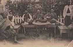 At the same time, popular music developed in the early 19th century, using Tunisian Arabic poems accompanied by Tunisian musical instruments.[3][7] Popular music includes Rboukh that is accompanied by a Mezoued,[8] Salhi that is accompanied by a Ney[8] and Sufi music that are religious songs mainly accompanied by Tambourins.[8] This kind of music was promoted by the National Troupe of the Popular Arts, created in 1962.[9] Later adaptation and promotion of popular songs, especially by Ahmed Hamza and later Kacem Kefi, further developed Tunisian music.[5] Natives of Sfax, they were both influenced by Mohamed Ennouri and Mohamed Boudaya, leading masters of popular music in that city.[1][5] Nowadays, this kind of music is very popular.[10]