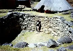 Fifteenth to seventeenth century ruins of the Ziwa people (upland culture) have been found throughout Nyanga.[17][18] The ruins include homesteads, centred on pit structures thought to have been used as cattle-pens and larger hill-top settlements, referred to as Forts.[17][19] The pit structures were once referred to as slave pits,[5] but that interpretation has generally been not supported by archaeologists and is now discredited.[17][20] There are three sites which can be readily accessed by tourists: Chawomera Fort is located above the Nyangombe River, on a gravel road north of the park headquarters. In addition to the fort, there are several pit structures. Nyangwe Fort, near Mare Dam, is the most extensive and best-preserved ruin in the park. It is a top a small hill with good views over the Mare valley. Near the park headquarters is a reconstructed pit structure - the homestead around a pit structure has been rebuilt and a site museum established. Several other sites have spectacular locations,[19] such as the fort which overlooks the confluence of the Nyangombe and Nyaumziwa rivers and a small fort on top of a hill just west of Mount Nyangani. However these two sites are not easily accessible.[19]