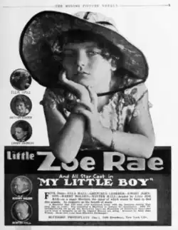 My Little Boy is a 1917 American silent drama directed by Elsie Jane Wilson based on the story by Rupert Julian with the scenario written by Elliott J. Clawson. The film stars Zoe Rae, Ella Hall and Emory Johnson. The film was released on December 17, 1917 by Universal Film Manufacturing Company under by the name Bluebird Photoplays.[1][2]