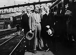 In 1924, he emigrated to Czechoslovakia where, despite having not completed gymnasium, he studied economics and engineering at the Ukrainian Husbandry Academy in Poděbrady, cofounding the League of Ukrainian Nationalists in 1925 and joining the Leadership of Ukrainian Nationalists (the exiled executive command and hereon the PUN) of the Ukrainian Military Organization (UVO) the following year where he was in charge of organizational affairs and later UVO propaganda.[3][2] In February 1929, the League of Ukrainian Nationalists merged with the UVO and a number of far-right student organizations to form the Organization of Ukrainian Nationalists (OUN) with Stsiborskyi serving as chairman of its First Grand Congress, held in Vienna, and being elected second-in-command to Yevhen Konovalets.[3] Stsiborskyi received his degree in April, for which he had written a thesis titled 'Agrarian policy of Ukrainian nationalism' that his supervisor described as being written "in the spirit of Mussolinism", remarking on his supposed "imperialistic dream" for the necessary "powerful expansion of colonial nature to the Near East".[3]:319