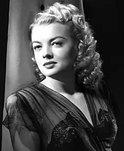 Myrna Dell (born Marilyn Adele Dunlap;[2] March 5, 1924 – February 11, 2011) was an American actress, model, and writer who appeared in numerous motion pictures and television programs over four decades.[3] A Hollywood glamour girl in the early part of her career, she is best known today for her work in B-pictures, particularly film noir thrillers and Westerns.[4]