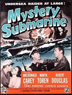 Mystery Submarine is a 1950 American war film directed by Douglas Sirk and starring Macdonald Carey, Märta Torén and Robert Douglas.[1]