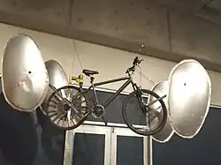 | A bicycle can be modified to operate on both land and water. Based on photographs that allegedly show a person riding such a craft, equipped with empty water-cooler jugs for flotation. | Confirmed | ![]() After examining the photographs, Adam attached paddles to the rear wheel of a bicycle and built a frame to hold eight jugs as pontoons. He also added a locking mechanism to keep the jugs clear of the ground when riding on land. At a swimming pool, he was able to steer the bike on the water and achieve a satisfactory speed, even repairing a slipped chain without dismounting, but a sudden flip left him unable to right himself. Jamie then built a bicycle of his own, with more paddles on the rear wheel, an electric crankshaft to lower it into the water, and steel pontoons designed to reduce water resistance and increase stability. An initial test failed due to a leaking pontoon; after fixing this problem, he and Adam held a race on a lake. Starting from the shore, they had to set their bicycles up for water travel, then pedal out to a buoy and back. The race showed that the original design could be converted for use in the water more quickly, but Jamie's design moved through the water far more effectively and Jamie won handily. However, he and Adam considered the myth to be confirmed since the original design still worked as depicted. |