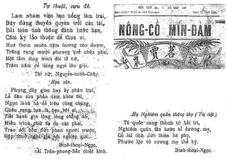 With the first editor-in-chief Lương Khắc Ninh from 1901 to 1906, then the second – Trần Chánh Chiếu from 1906 to 1908, Nông Cổ Mín Đàm was a forum of the contemporary Vietnamse businessmen to protect the national economic development and interest.[2]