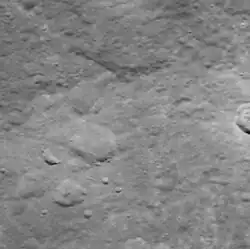 Nākahi Facula is located southeast of Amaru Facula. The irregular depressions in both suggest they are probably volcanic vents.