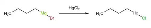 n-Butylmercuric chloride is made by reacting n-butylmagnesium bromide with mercury chloride.[1]