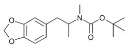 N-t-BOC-MDMA is a chemical compound which can be both a synthetic precursor to, or a prodrug of the empathogenic drug MDMA. It was first identified in Australia in 2015 as a seizure by customs, and has subsequently been found in China, the Netherlands and other European countries. Originally it was thought to be intended as a non-illegal form of MDMA which could be easily converted into the prohibited final product after importation, however one seizure by police found N-t-BOC-MDMA in the process of being pressed into pills, and experiments with simulated gastric fluid confirmed that it can be broken down to MDMA by human stomach acid. Similar N-protected compounds such as N-t-BOC-methamphetamine, N-p-tosyl-methamphetamine, N-t-BOC-ketamine, N-t-BOC-norketamine, and N-methoxycarbonyl-MDA have also been encountered by law enforcement.[1][2][3][4][5][6][7]