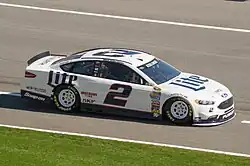 Penske's No. 02 team originally began running in the ARCA RE/MAX Series in 2000 as the No. 27 Ford sponsored by Alltel and driven by Ryan Newman.[8] Later in the year, the team made its NASCAR Cup Series debut with Newman at Phoenix as the No. 02 Alltel Ford, finishing 41st due to engine failure. In 2001, Newman split time between ARCA, the NASCAR Busch Series, and the NASCAR Cup Series.[9][10] He drove in 15 Busch races and won at Michigan. In the Cup Series, he participated in seven events, and almost won The Winston Open before his engine expired in the closing laps. He put together two top-five finishes, which included a second-place finish at Kansas, and a pole in his abbreviated schedule.
