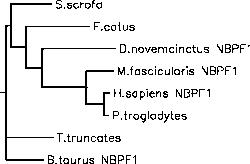 Rooted phylogenetic tree of NBPF1 paralogs based on multiple sequence alignment.