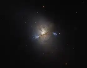 NGC 1222 is currently interacting with and swallowing two dwarf galaxies that are supplying the gas and dust needed to become a starburst galaxy.[7] The shockwaves produced by theses mergers causes some regions of NGC 1222 to heat up. There is also gas inflow.[8]