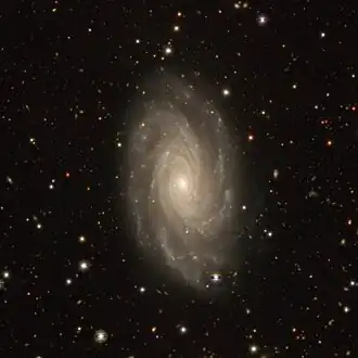 NGC 7083 is an unbarred spiral galaxy[2] located about 134 million light-years away[3] in the constellation of Indus.[4] It is also classified as a flocculent spiral galaxy.[5] NGC 7083 was discovered by astronomer James Dunlop on August 28, 1826.[6]