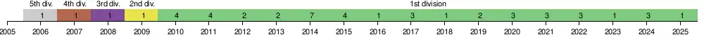 Season Division P W D L F A Pts Pos Cup Supercup Competition Result Name Goals