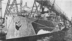 At some point during the war, the ship's anti-aircraft armament was augmented with two additional 3.7 cm SK C/30 and four 2 cm (0.79 in) AA guns.[14]