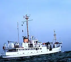 NOAA had limited funding during its first three years of existence between 1970 and 1972, forcing it to reduce ship operations and oceanographic studies.[4] This led NOAA to decommission George B. Kelez near the end of 1972, and she never returned to fisheries research work.[4] However, in March 1973 NOAA recommissioned her and loaned her to the United States Geological Survey for use in Southern California.[4] In late 1974, NOAA moved her to a new home port, NOAA's Atlantic Marine Center at Norfolk, Virginia, and on 6 December 1974 opened bids for repair work to the ship.[4]