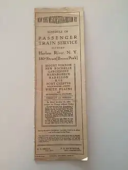 - ^ "More Westchester Trains". The New York Times. July 2, 1912. ISSN 0362-4331. Retrieved June 19, 2020.