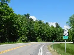 New York State Route 131 (NY 131) is a 12.45-mile (20.04 km) long state highway in St. Lawrence County, New York, in the United States. It serves as a coastal alternate route to NY 37, going around the village of Massena instead of through it. NY 131 leaves NY 37 in the town of Louisville and rejoins it in the town of Massena. Town Line Road, a county-maintained highway straddling the Louisville–Massena town line, serves as a connector between NY 131 and Massena village.