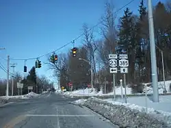 NY 385 northbound at the junction with NY 23 in the town of Catskill