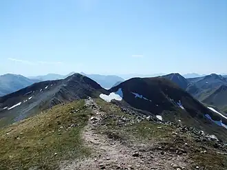 Na Gruagaichean (Scottish Gaelic for 'the maidens') is one of the Mamores mountains in the Scottish Highlands, between Glen Nevis to the north and the village of Kinlochleven to the south. It has twin peaks, the highest of which rises to 1,056 m (3,465 ft), and it is classed as a Munro. The mountain is one of the most accessible from the village, due in part to its nearness and a well-defined path leading most of the way to the summit.