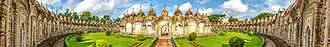 Naba Kailash Mandir is a Shiva temple in Kalna City of Purba Bardhaman district, West Bengal, India. The temple structure, completed in 1809, consists of a combination of two concentric circles with a total of 108 small temples, each dedicated to Shiva. It represents the number of beads on a japamala, and the walls of this temple depict episodes from Mahabharata and Ramayana and many hunting scenes. There are seventy-four temples in the outer circle and thirty-four temples in the inner circle.[1] Each of these 108 temples has a Shiva linga. Each Shiva linga in the inner circle, symbolizing Sadasiva, is white, while half of the Shiva linga in the outer circle, symbolizing Rudra, is black, and the other half is white.[2]