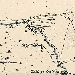 Nabi Rubin (from Arabic: النبي روبين, romanizedan-Nabī Rūbīn) was a town depopulated during the 1947–1949 Palestine war in Palestine, now Israel, located 14.5 kilometers (9.0 mi) west of Ramla,[4] just northeast of Yibna, and 18 kilometers (11 mi) south of Jaffa.[5] The village was situated on the southern banks of the Nahal Sorek/Wadi al-Sarar at an elevation of 25 meters (82 ft) above sea level.