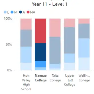 In 2022, 63.6% of Maori students leaving Naenae College held at least NCEA Level 1,[17] 43.6% held at least NCEA Level 2,[18] 12.7% held at least NCEA Level 3, and 9.2% held at least University Entrance.[19]
