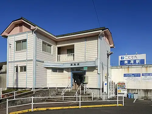 Nagao Station (長尾駅, Nagao-eki) is a passenger railway station operated by the Takamatsu-Kotohira Electric Railroad in the city of Sanuki, Kagawa, Japan. It is operated by the private transportation company Takamatsu-Kotohira Electric Railroad (Kotoden) and is designated station "N17".